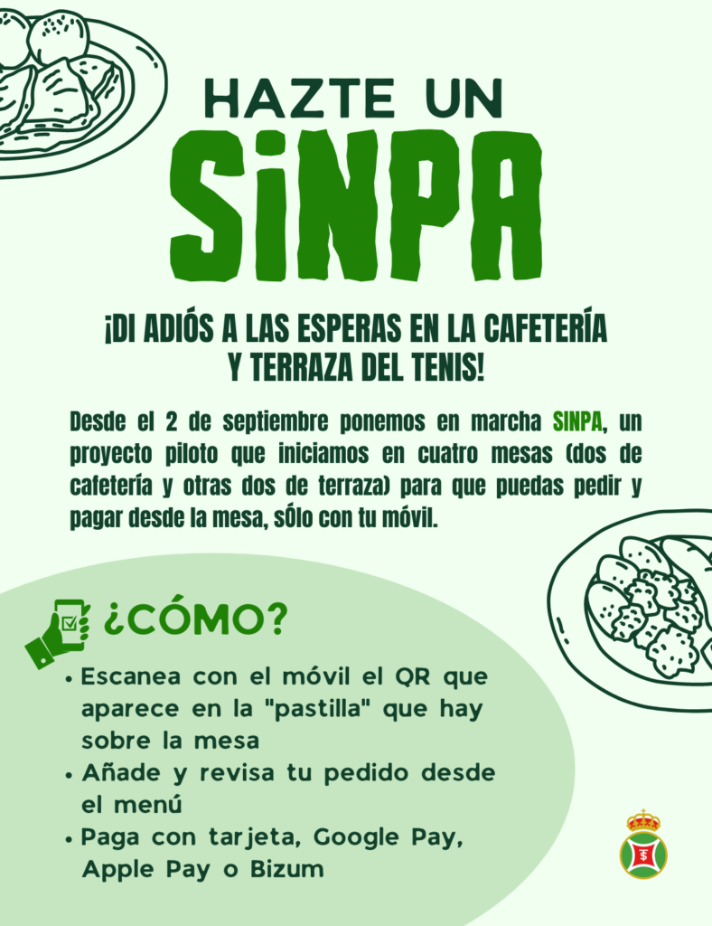 A partir de hoy, 2 de septiembre, ponemos en marcha SINPA, un proyecto piloto que iniciamos en cuatro mesas (dos de cafetería y otras dos de terraza) para que puedas pedir y pagar desde la mesa, sólo con tu móvil.
