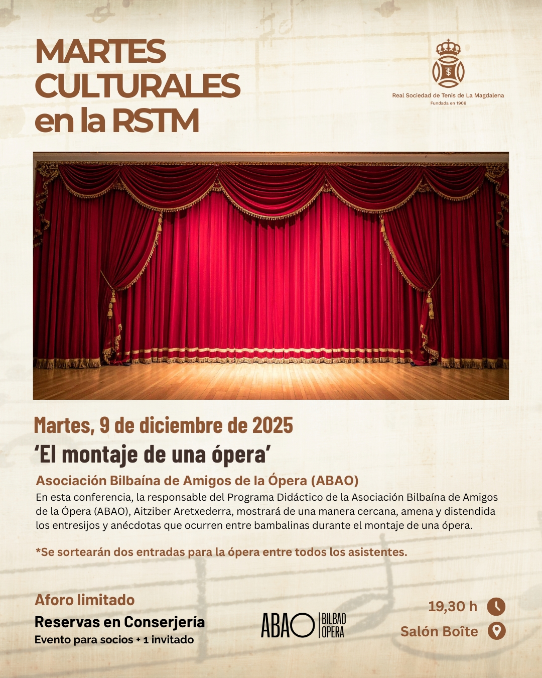 ♔ Martes Culturales en la RSTM. ‘El montaje de una ópera’. Asociación Bilbaína de Amigos de la Ópera (ABAO)